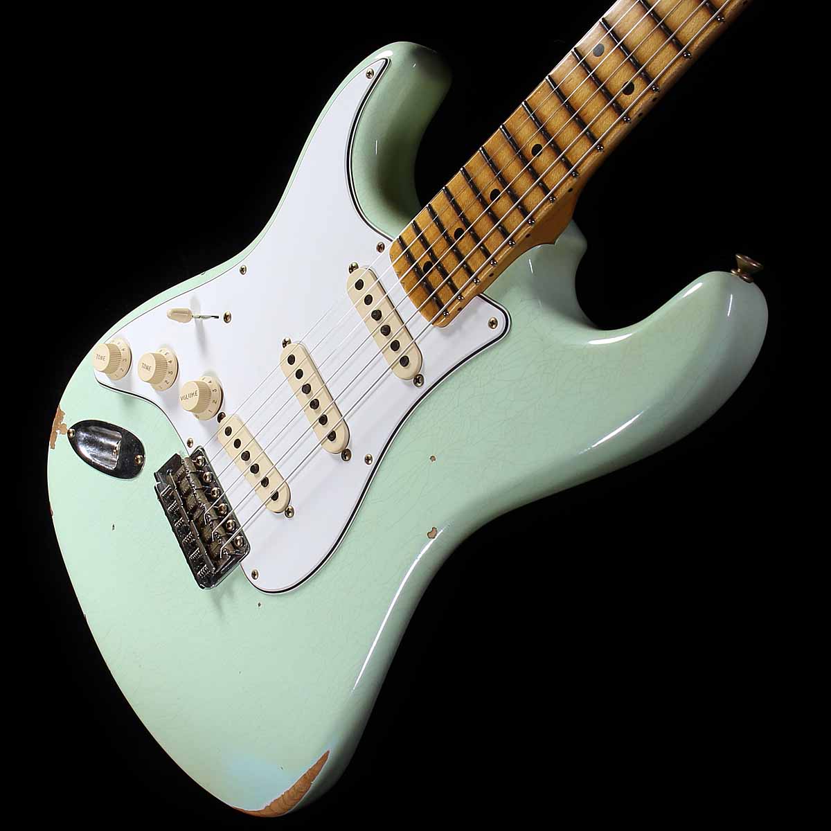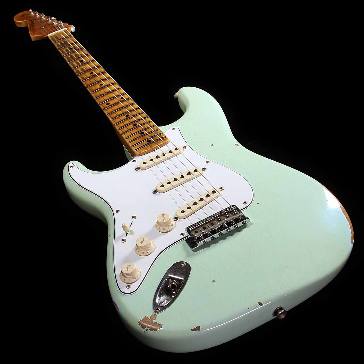 Condition: Relic; Body: Alder; Neck: Quartersawn maple, 54 Soft V profile (.850-.980), 9.5 radius; Nut: 1.650; Color: Surf green; Pickups: handwound Fat 50s; Scale: 25.5; Orientation: Lefthanded (of course)