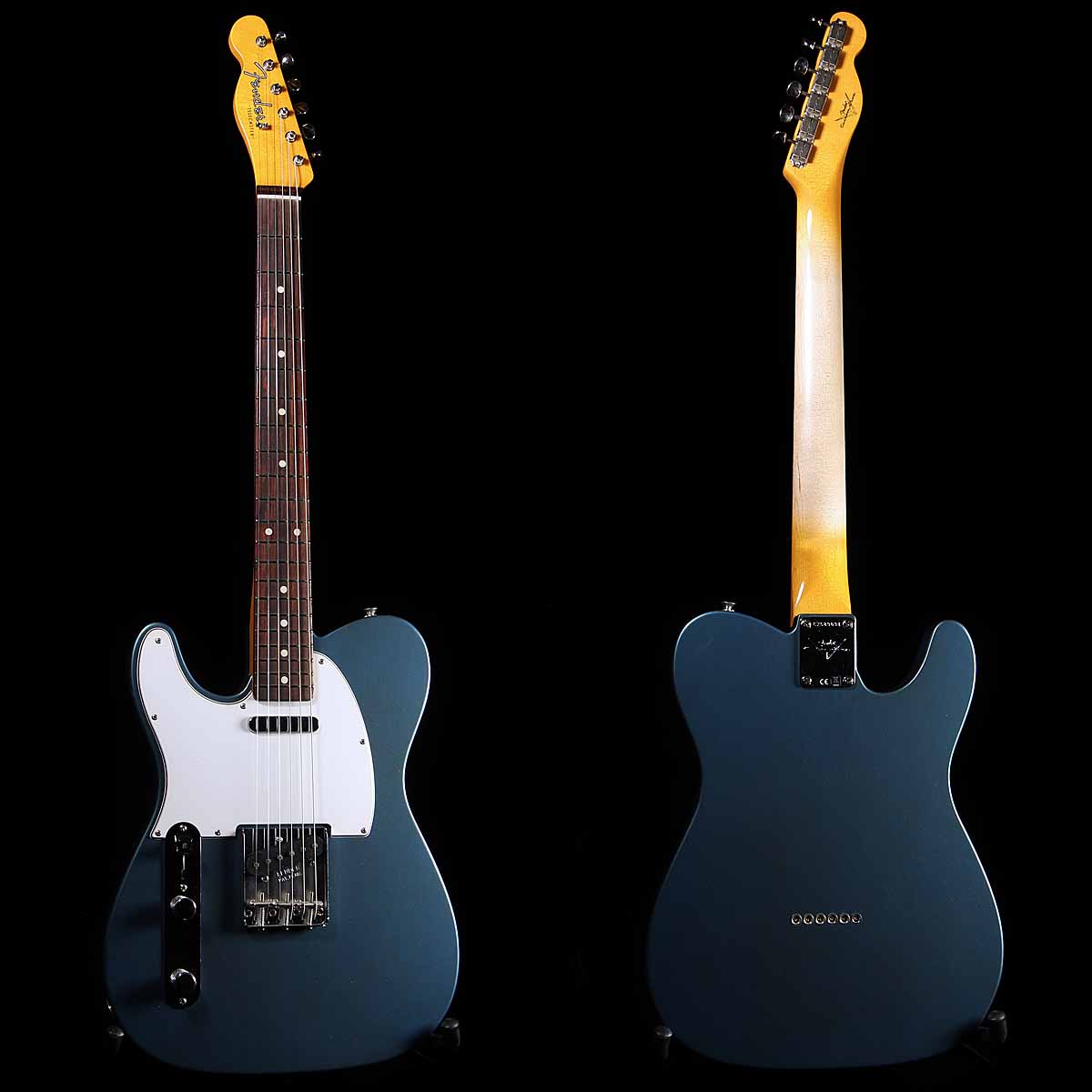 Condition: New; Body: Roasted alder; Neck: 60 Style Oval C (.790-.930), 9.5 radius; Nut: 1.650; Color: Super Aged Lake Placid Blue; Pickups: handwound 67 Tele; Scale: 25.5; Orientation: Lefthanded (of course)