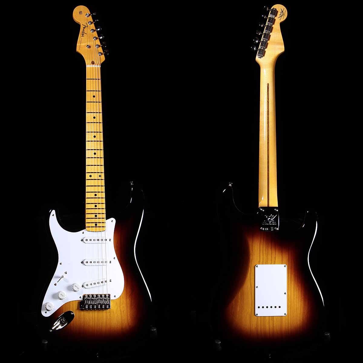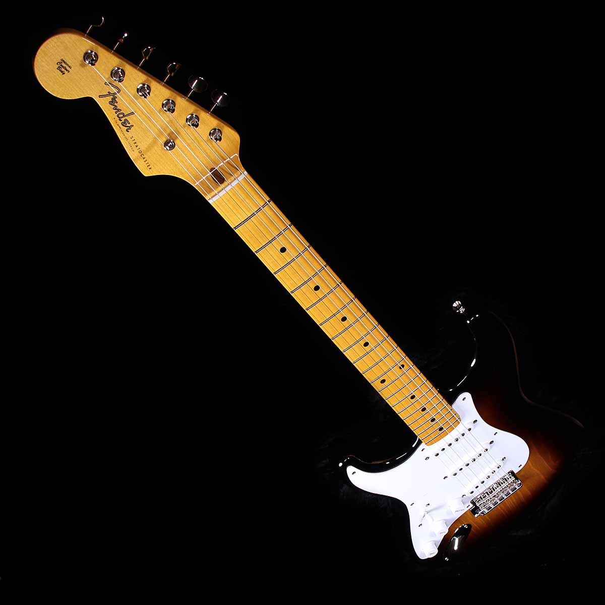 Other premium features and authentic first-year Strat® appointments include a single-ply white pickguard and serial-number back plate, 1954-style ABS white pickup covers and control knobs, Custom Shop vintage synchronized tremolo bridge, vintage-style tuners, disc string tree, special 70th Anniversary Stratocaster® neck plate, deluxe embroidered hardshell case, special “case candy” kit and certificate of authenticity.