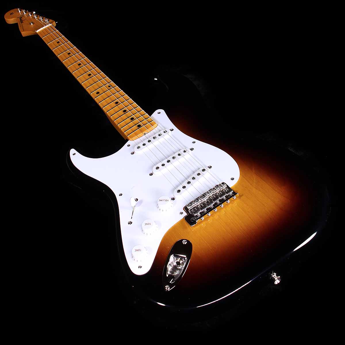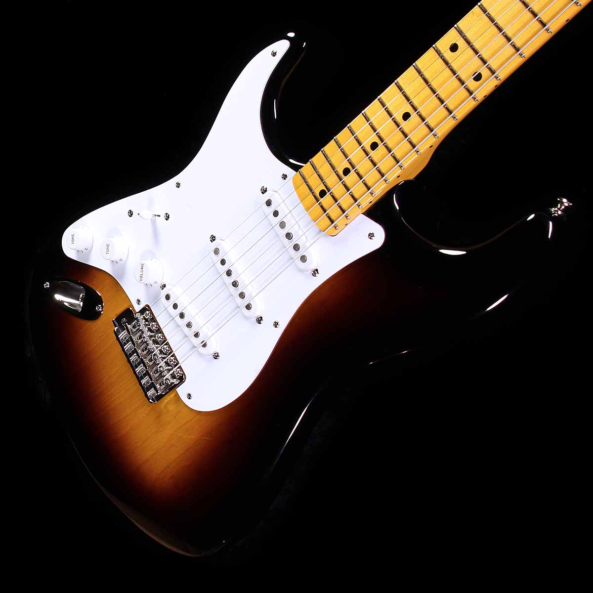 Condition: NOS; Body: Ash; Neck: Maple 5/4 quartersawn, 70th Soft V profile (.885-980), 7.25-9.5 radius; Nut: 1.650; Color: Two tone burst; Pickups: handwound 54 Strat; Scale: 25.5; Orientation: Lefthanded (of course)