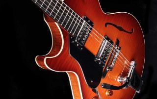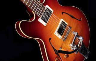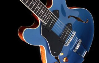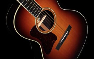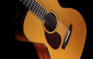 Here's a nice 2018 Collings OM1 T Julian Lage signature model, hide glue, ebony bridge and fingerboard, bone saddle, relic Waverly tunes with vintage oval buttons, customized with an Adirondack top. The guitar is in excellent condition, with light player wear and a couple of tiny indentations, one on the top, one on the side. [...]